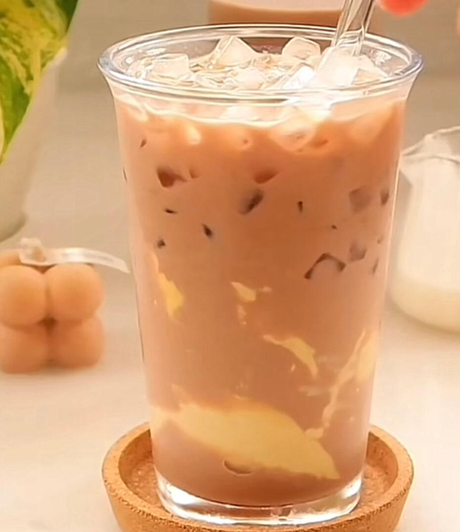 chocolate milk with pudding as topping.