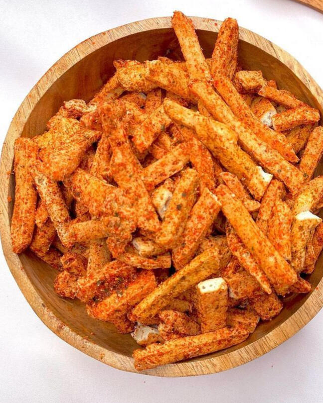 Fried meatballs with bbq seasoning and various kinds of sauces (mayo, chili, cheese, bbq).